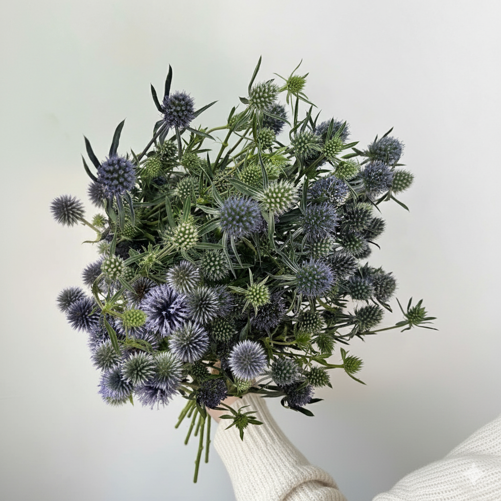 Hoa nhím biển (Sea Holly): một loài hoa với vẻ ngoài gai góc, cứng cáp và có màu xanh bạc kỳ lạ. Nó không chỉ độc đáo về mặt thị giác mà còn tượng trưng cho sự bảo vệ và sức mạnh nội tâm, phản ánh khía cạnh mạnh mẽ và kiên cường ẩn sâu bên trong con người Bảo Bình.