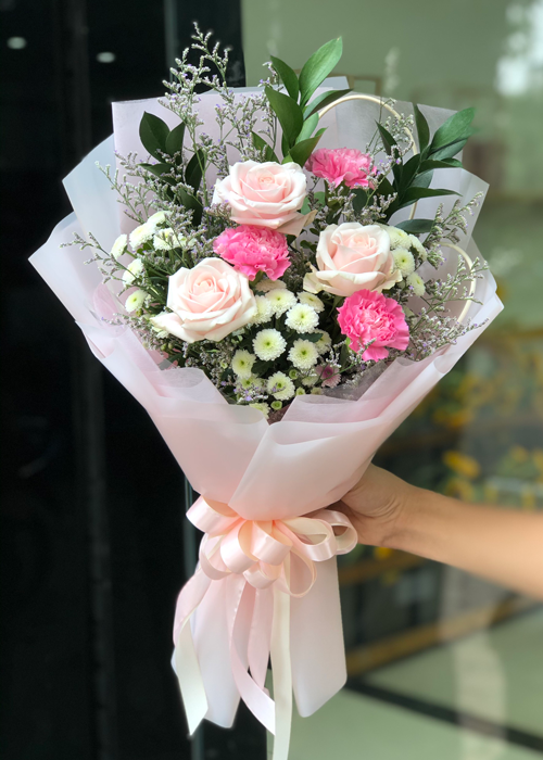Bó hoa tuy không cầu kì về kiểu dáng nhưng lại khiến người ngắm nhìn khó quên bởi sự nhẹ nhàng từ màu sắc đến sự đơn giản nhưng lại tinh tế mà bó hoa mang lại. Hi vọng đây là sẽ món quà đầy bất ngờ mà bạn muốn dành cho ai đó vào mỗi sớm mai.
