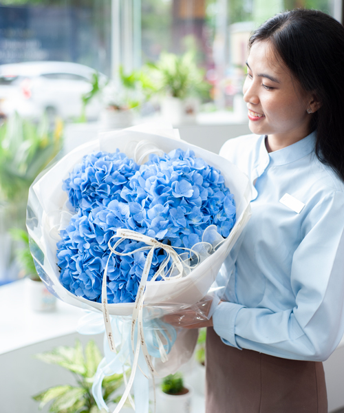 *** Lưu ý: Do cẩm tú cầu nhập khẩu không có sẵn, Quý khách vui lòng đặt hoa trước 01 ngày.