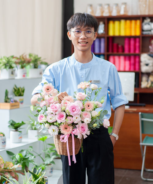 Giỏ hoa phù hợp để tặng người bạn thân, người thương, hoặc chính bản thân bạn – trong những ngày cần một chút dịu dàng, một chút yên bình giữa cuộc sống bận rộn. Đặt trong một góc nhỏ nơi cửa sổ hay bàn làm việc, Blush Harmony như một hơi thở trong lành mang theo sự chăm chút đầy yêu thương.