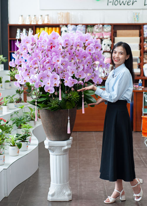 Tinh tế,lãng mạn với những màu sắc sang trọng, quý phái. Được thiết kế theo phong cách trang nhã. Những bông hoa kiêu kỳ tôn đẹp vẻ đẹp quý phái của chủ nhân, thể hiện tình yêu sâu sắc. Thích hợp tặng người yêu, bạn bè, sinh nhật...