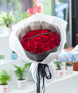 Bó hoa hồng đỏ cổ điển được thiết kế tối giản mà đầy cuốn hút tượng trưng cho tình yêu nồng cháy. Tông đỏ quyền lực được làm nổi bật trên nền giấy gói đen – trắng sang trọng, mang đến cảm giác vừa hiện đại vừa tinh tế. Mỗi đóa hoa như một lời khẳng định mạnh mẽ của cảm xúc, phù hợp để dành tặng trong các dịp kỷ niệm tình yêu, Valentine, sinh nhật người thương hay những khoảnh khắc cần bày tỏ trọn vẹn tấm lòng.