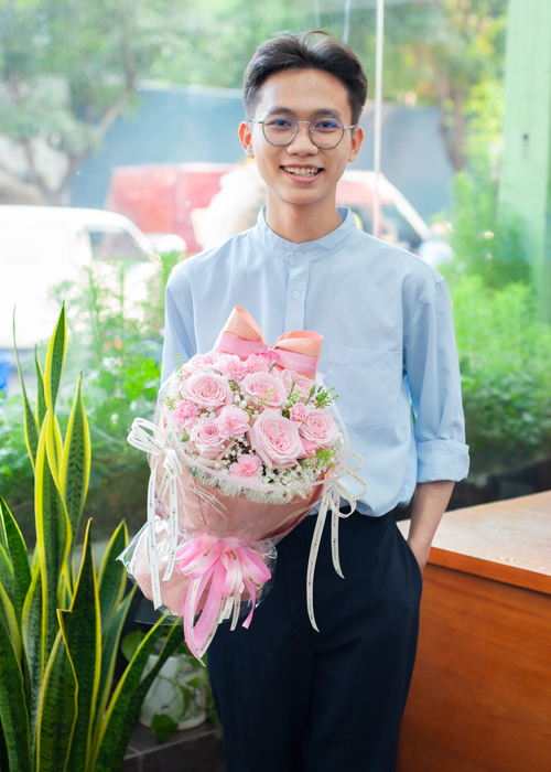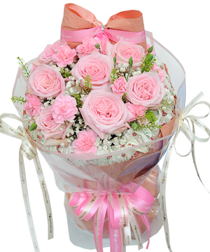 Sắc hồng ngọt ngào của hoa hồng da và sắc trắng tinh khôi của cẩm chướng trắng được kết hợp lại dễ dàng làm xao xuyến và thu hút ánh nhìn với bất kì ai. Bó hoa chính là lời nhắn " "Em đến dịu dàng như cơn mưa mùa hạ làm mát lạnh tâm hồn anh bằng một tình yêu bình dị và thủy chung. Cám ơn em - thiên thần của anh".