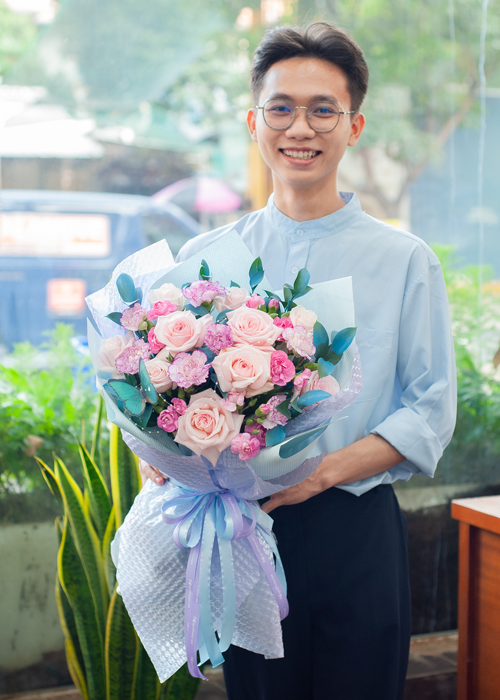 Với tone màu hồng pastel nhẹ nhàng và tràn đầy nữ tính như sự dịu dàng, đằm thắm của những cô thiếu nữ xinh xắn tuổi trăng tròn. Hoa hồng da kết hợp cùng cát tường hồng và baby trắng chắc chắn sẽ là điều bất ngờ và sang trọng dành tặng cho những cô gái đáng yêu