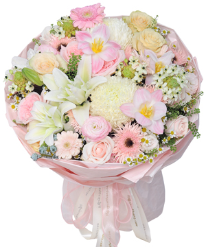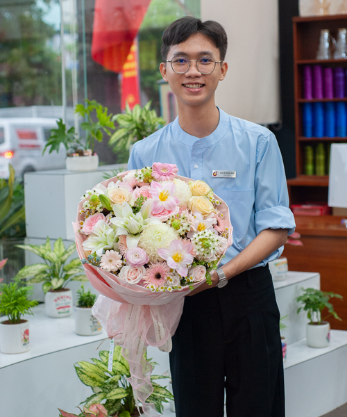 Sắc hoa rực rỡ hồng – trắng đan xen, như ánh nắng ban mai chiếu rọi đầy sức sống. Bó hoa mang đến năng lượng tích cực, lan tỏa sự ấm áp và niềm tin yêu. Shine On Me là lời chúc tươi sáng, khích lệ và tràn đầy hy vọng cho bất kỳ ai nhận được.