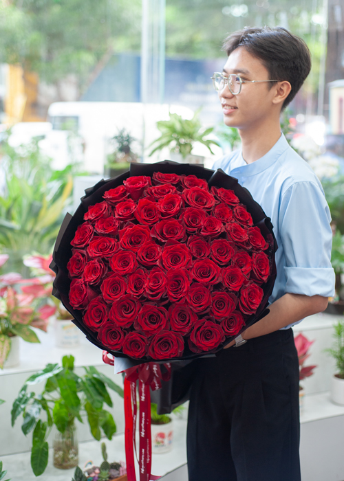 Bó hoa hồng ecuador explorer đỏ rực rỡ tượng trưng cho tình yêu nồng cháy, chân thành và bất diệt. Với cách gói giấy đen sang trọng cùng nơ đỏ nổi bật, bó hoa này thể hiện sự đẳng cấp và tinh tế. Phù hợp để tặng người yêu, vợ hoặc trong các dịp lãng mạn như Valentine, lễ kỷ niệm tình yêu.