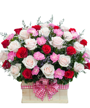 - Mẫu NGỌT NGÀO: dùng màu đỏ, hồng, tím, trắng kết hợp. Mẫu này thích hợp để tặng vợ, người yêu, crush.