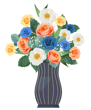 - Mẫu TƯƠI VUI: dùng tông vàng, xanh, cam, trắng kết hợp. Mẫu này thích hợp tặng cho Mẹ, bạn bè, đồng nghiệp, người thân.