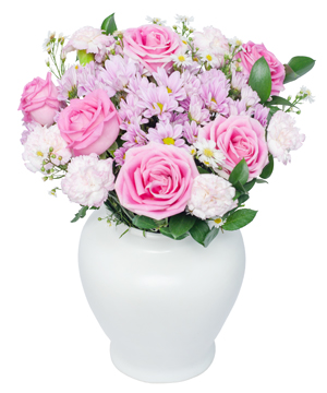 Bao gồm 10 cành hoa hồng các màu theo chủ đề, 3 hoa phụ như cát tường, cẩm chướng, cúc, lan... nhiều loại lá và phụ kiện khác.