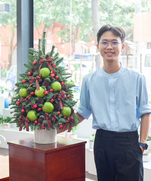 Được làm từ cành thông tươi Đan Mạch chất lượng cao, cây thông này được thợ cắm tỉ mỉ vào foam xốp có nước, giúp giữ độ tươi lâu dài. Với sự kết hợp tinh tế giữa cành thông xanh mướt và các phụ kiện trang trí như bóng đèn, quả châu, ruy băng, cây thông mang đến vẻ đẹp hoàn hảo như một cây thông tươi thật. Bên cạnh đó, các loại quả trang trí đều là trái cây nhập khẩu tươi ngon tạo nên một mòn quà độc đáo và ý nghĩa dành tặng bạn bè, người thân của bạn trong dịp lễ hội này.