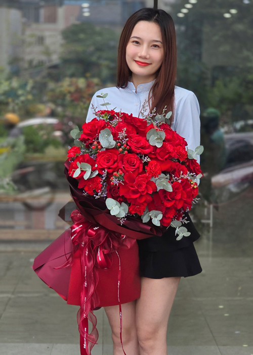 Bó hoa "Lời Từ Trái Tim" là sự lựa chọn lý tưởng để thể hiện tình cảm sâu sắc và chân thành. Sự kết hợp hoàn hảo giữa các sắc thái đỏ thắm của hoa hồng, cùng với những cành hoa điểm xuyết màu tím nhạt và xanh lá, không chỉ làm nổi bật vẻ đẹp quyến rũ mà còn mang ý nghĩa của sự trường tồn và bền vững. Bó hoa này không chỉ là một món quà, mà còn là biểu tượng của tình yêu mãnh liệt và sự quan tâm tận tâm, thích hợp để dành tặng cho người thương trong các dịp đặc biệt như lễ kỷ niệm, Valentine, hay đơn giản là một cách để nói "Anh yêu em" một cách lãng mạn và không thể quên.