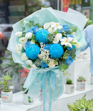 Sự kết hợp xanh – trắng thanh thoát, hiện đại gợi hình ảnh bầu trời rộng mở vô tận. Bó hoa là lời nhắn gửi về tự do, niềm tin và những khát vọng bay cao. Infinite Sky mang ý nghĩa của hy vọng không giới hạn, hướng đến tương lai đầy tươi sáng và bình yên.