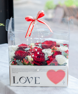 Hộp hoa tinh tế với sắc đỏ nồng nàn của hoa hồng, tượng trưng cho tình yêu mãnh liệt, kết hợp cùng hoa hồng trắng thanh khiết mang ý nghĩa của sự chân thành và vĩnh cửu. Thiết kế hộp mica trong suốt với chữ LOVE nổi bật cùng chiếc nơ đỏ sang trọng, biến món quà này trở thành lựa chọn hoàn hảo cho ngày lễ tình nhân, kỷ niệm hoặc những dịp đặc biệt để bày tỏ tình cảm chân thành.