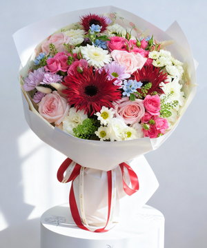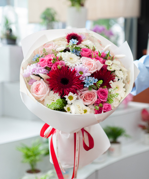 Bó hoa được thiết kế theo đúng tinh thần Garden Style – phong cách khu vườn tự nhiên với những đường nét phóng khoáng, mềm mại và tầng lớp hoa đan xen đầy cảm hứng. Sự kết hợp đa dạng nhiều loại hoa tạo nên tổng thể đa màu sắc nhưng vẫn hài hòa, hiện đại và đầy sức sống.